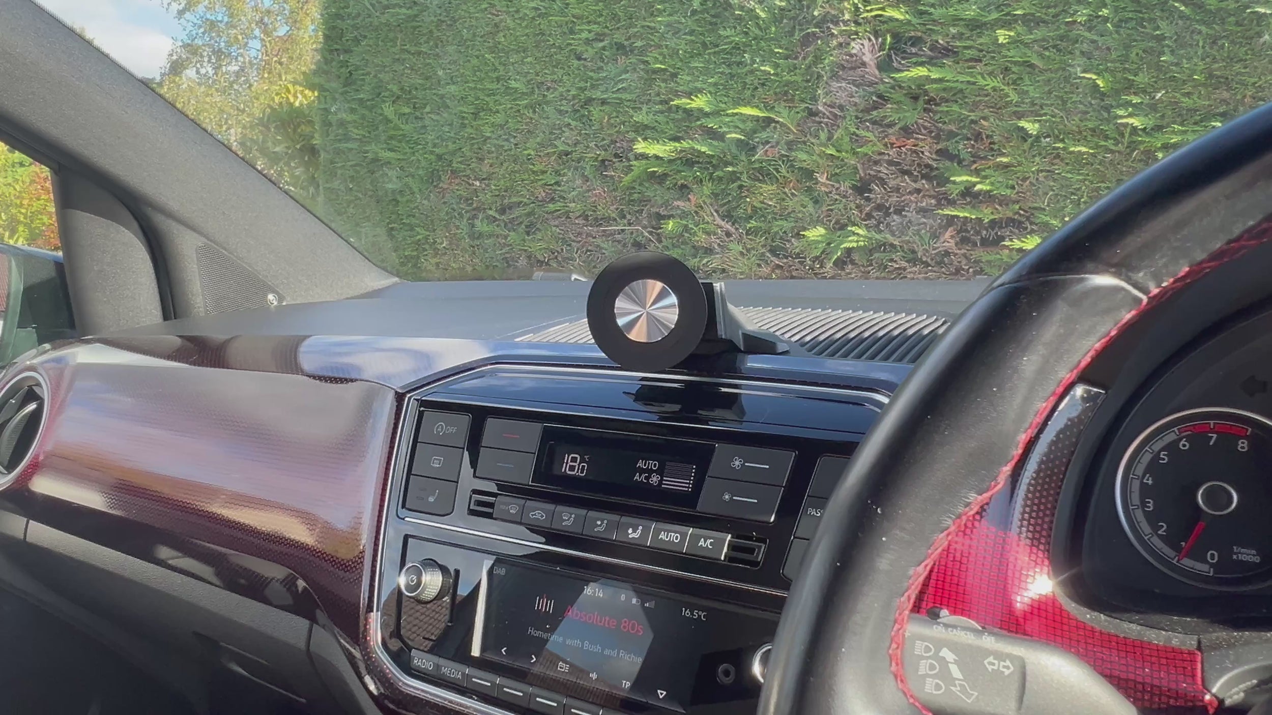 Super-strong magnet. I have tested this on a variety of roads and it has not let me down! Far stronger than others on the market that I have tested. Compact and sturdy, with a metal bolt through the stalk for extra strength. Adjustable to face driver or straight ahead.